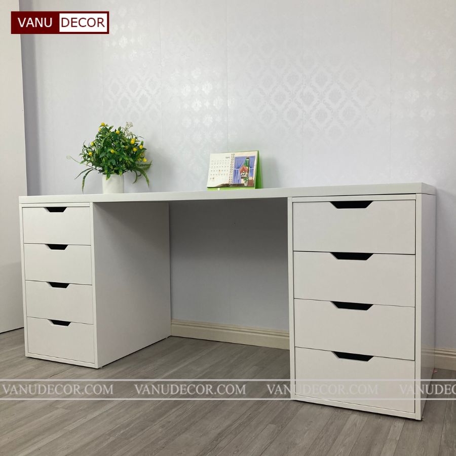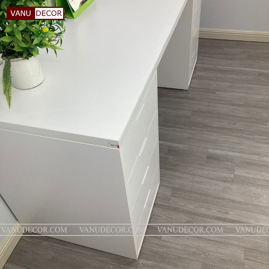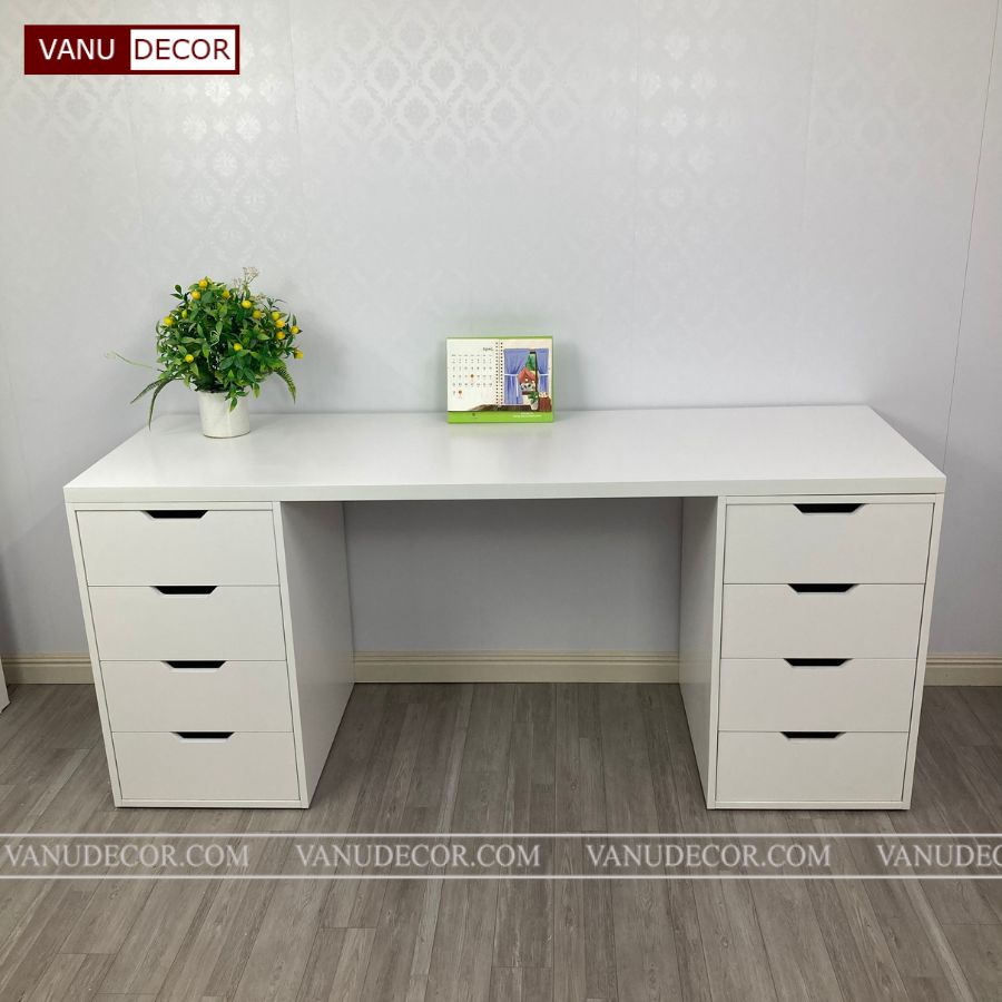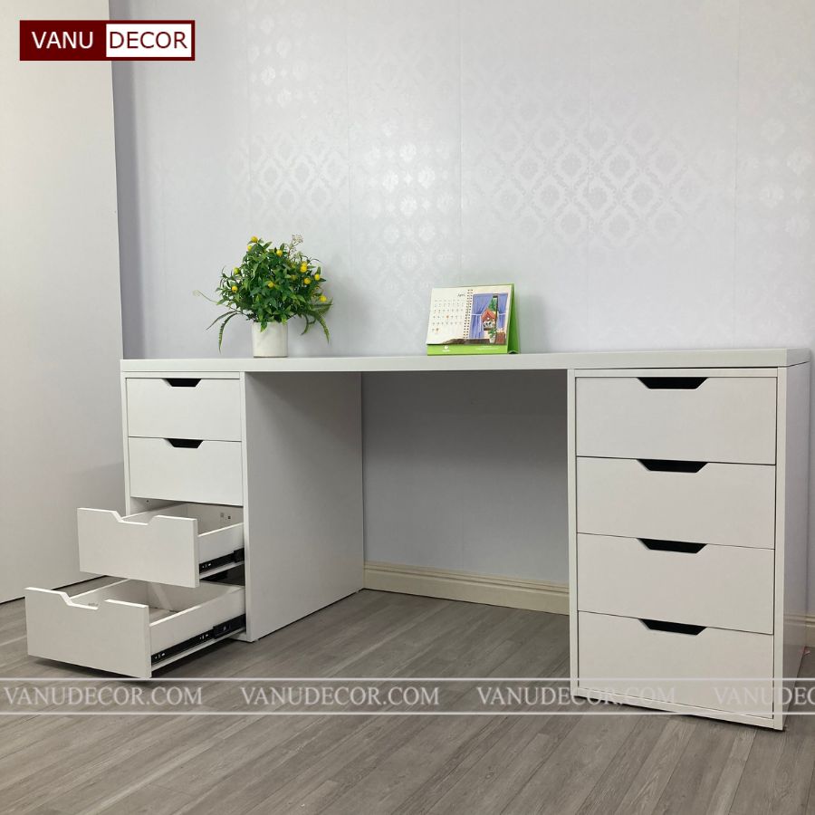 Bàn làm việc BLV03_VD01 được thiết kế theo phong cách trẻ trung, hiện đại, gồm 2 hộc bàn 5 ngăn kéo. Kích thước: Dài 1.8m rộng 60cm cao 75cm.