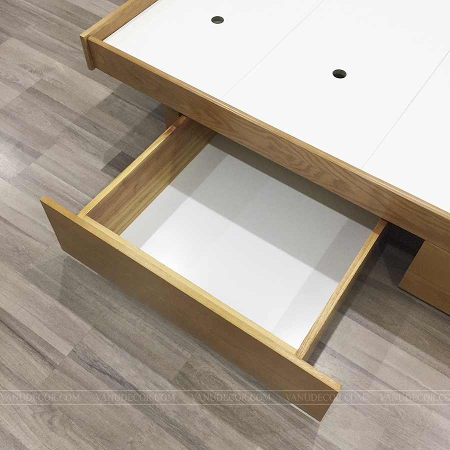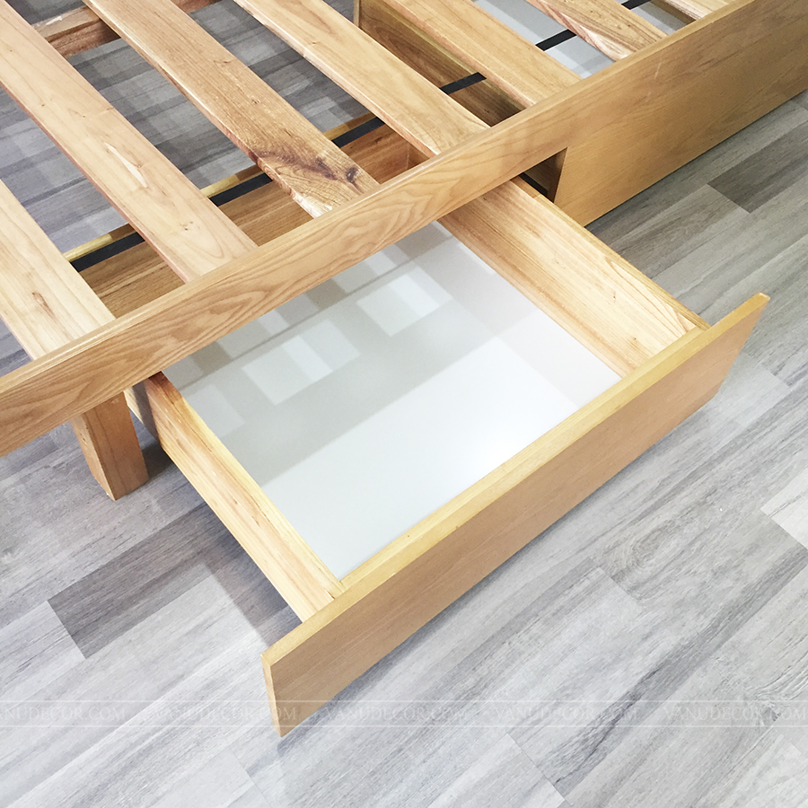 Ngăn kéo giường NK078 sử dụng cho các giường lắp ghép của VANU DECOR. Kích thước rộng 78cm x sâu 60cm x cao 24cm, chất liệu gỗ tự nhiên với bề mặt ngăn kéo gỗ sồi vân đẹp. Ngăn kéo được thiết kế khớp theo khung giường lắp ghép, bánh xe thẳng di chuyển linh hoạt.