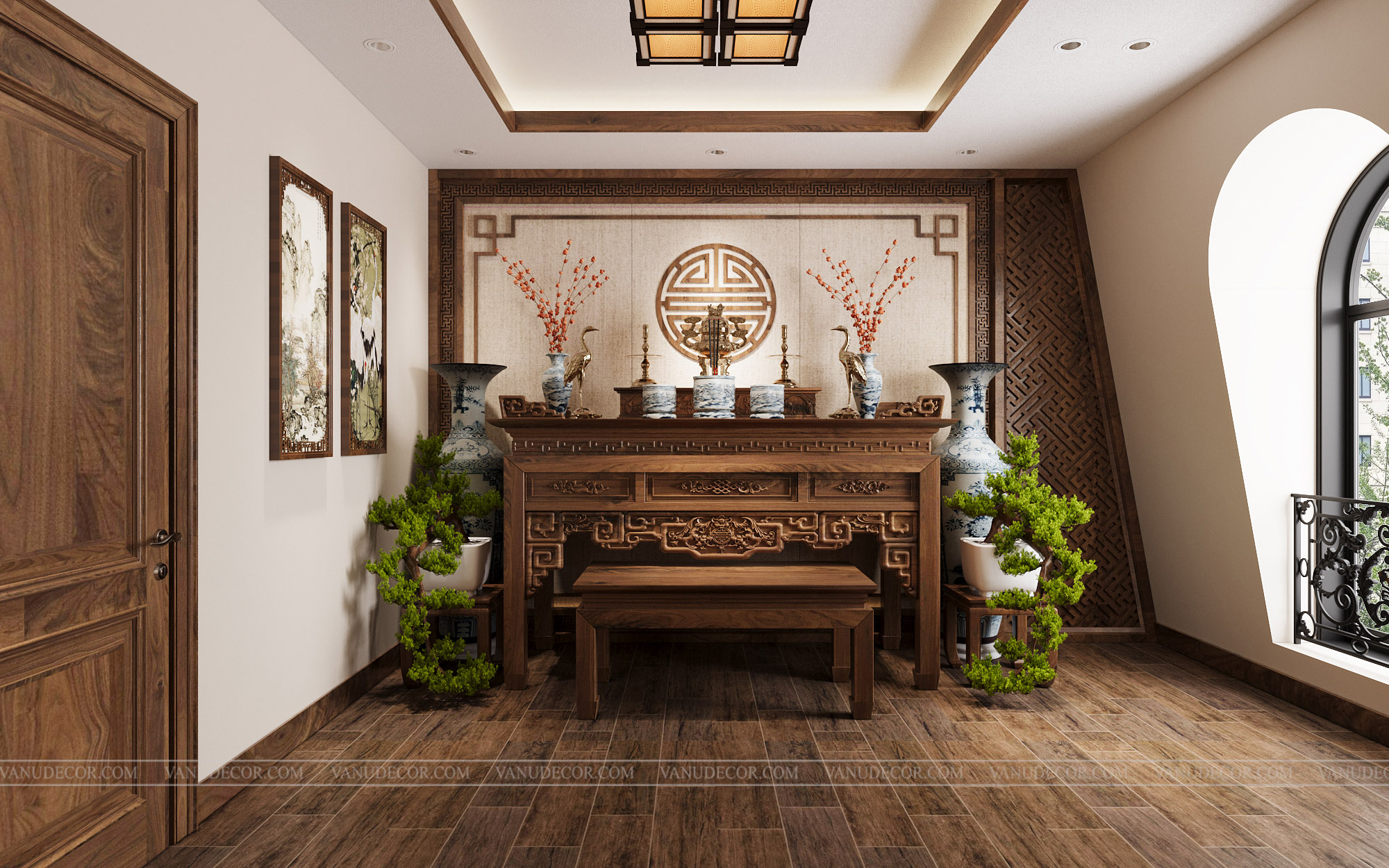 Khách hàng: Chị Luấn Địa chỉ: Biệt thự Hải Phòng Diện tích: 30m2 Hạng mục: Phòng thờ Chất liệu chủ đạo: Gỗ tự nhiên kết hợp MDF chống ẩm An Cường |