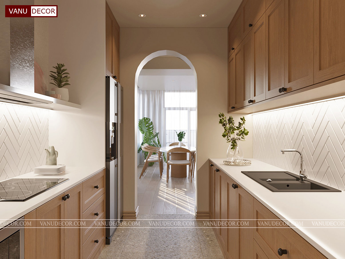 Khách hàng: Anh Tú Địa chỉ: Chung cư cao cấp - Vinaconex - Nam Từ Liêm, Hà Nội Diện tích: 150m2 Hạng mục: Phòng khách, bếp và 3 phòng ngủ Chất liệu chủ đạo: Gỗ MDF chống ẩm sơn Inchem kết hợp melanine An Cường  |