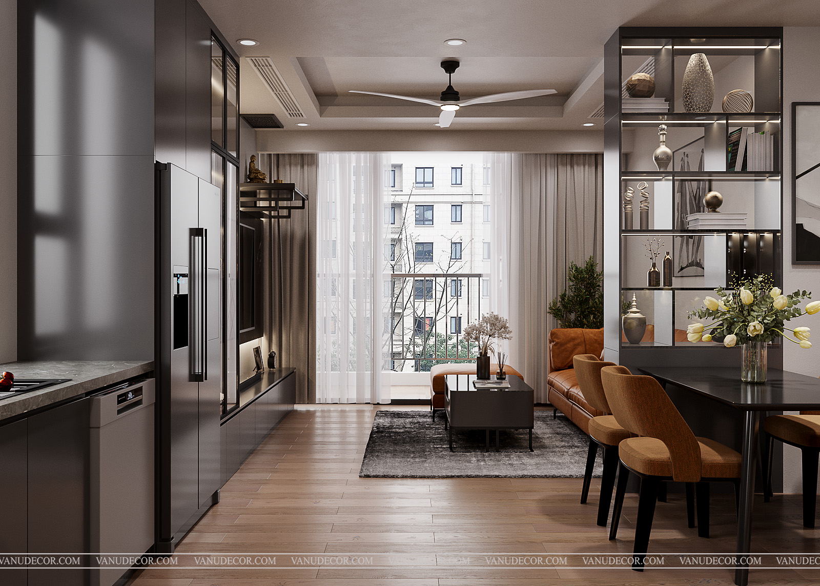 Khách hàng: Chị Vân Địa chỉ: Chung cư Ecorpark, Hưng Yên Diện tích: 80m2 Hạng mục: Phòng khách, bếp và phòng ngủ Chất liệu chủ đạo: Gỗ MDF chống ẩm An Cường phủ melanine |