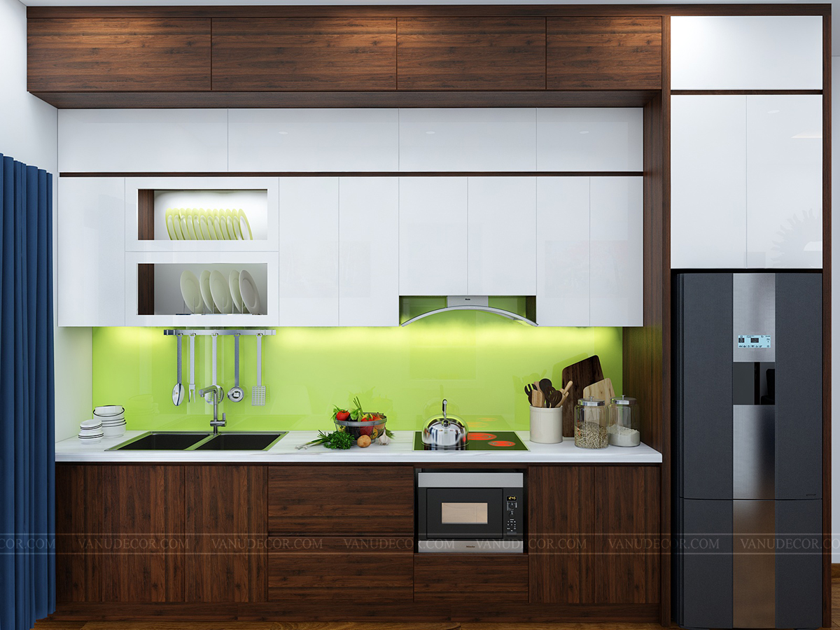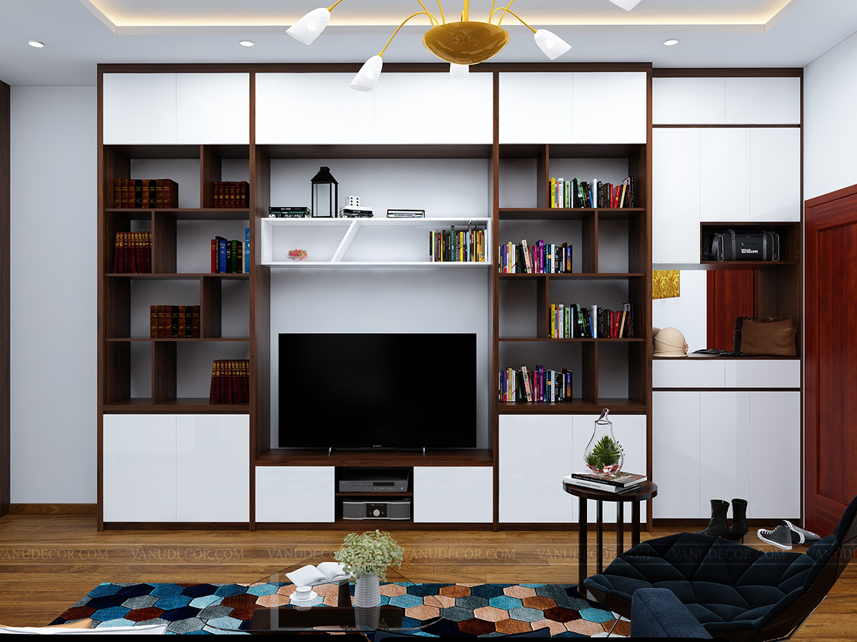 Khách hàng: Anh Tuân Địa chỉ: Chung cư Lê Văn Lương - Hà Nội Diện tích: 60m2 Hạng mục: Phòng khách + bếp, phòng đa năng và phòng ngủ Chất liệu chủ đạo: MDF chống ẩm phủ melanine Thái Lan kết hợp sơn PU |