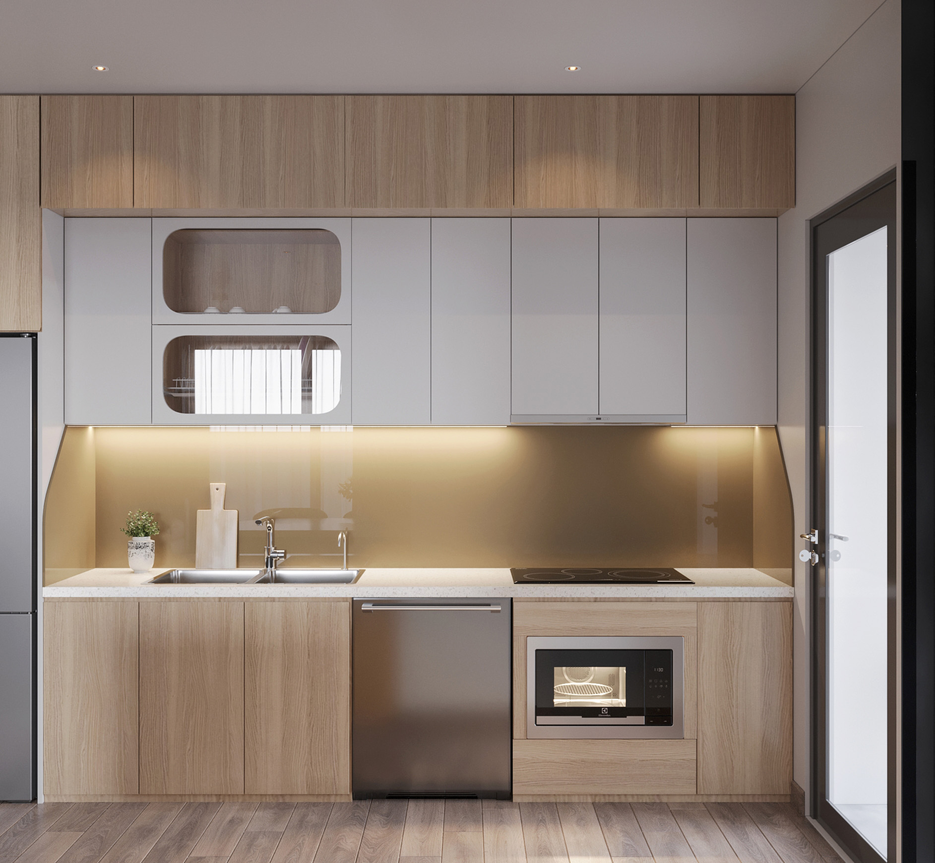 Khách hàng: Anh Tuấn Địa chỉ: Chung cư Pavilon Diện tích: 80m2 Hạng mục: Phòng khách bếp, phòng ngủ Chất liệu chủ đạo: Gỗ MDF chống ẩm An Cường phủ melanine |