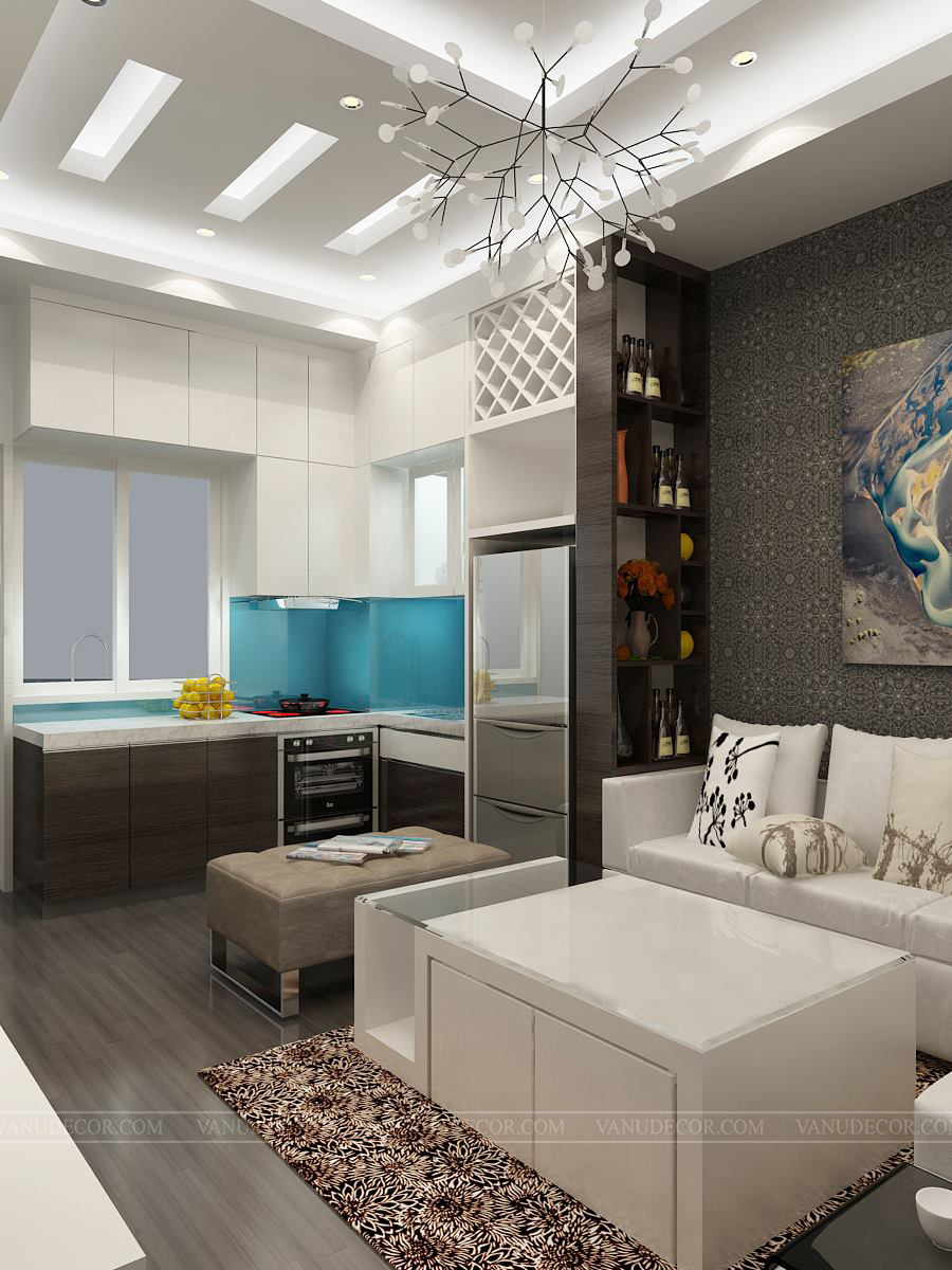 Khách hàng: Anh Hải Địa chỉ: Chung cư X2 Nguyễn Xiển - Hà Nội Diện tích: 60m2 Hạng mục: Phòng khách bếp Chất liệu chủ đạo: MDF chống ẩm phủ melanine An Cường kết hợp sơn PU |