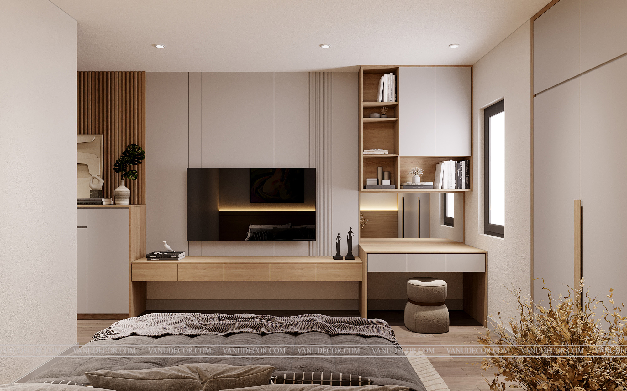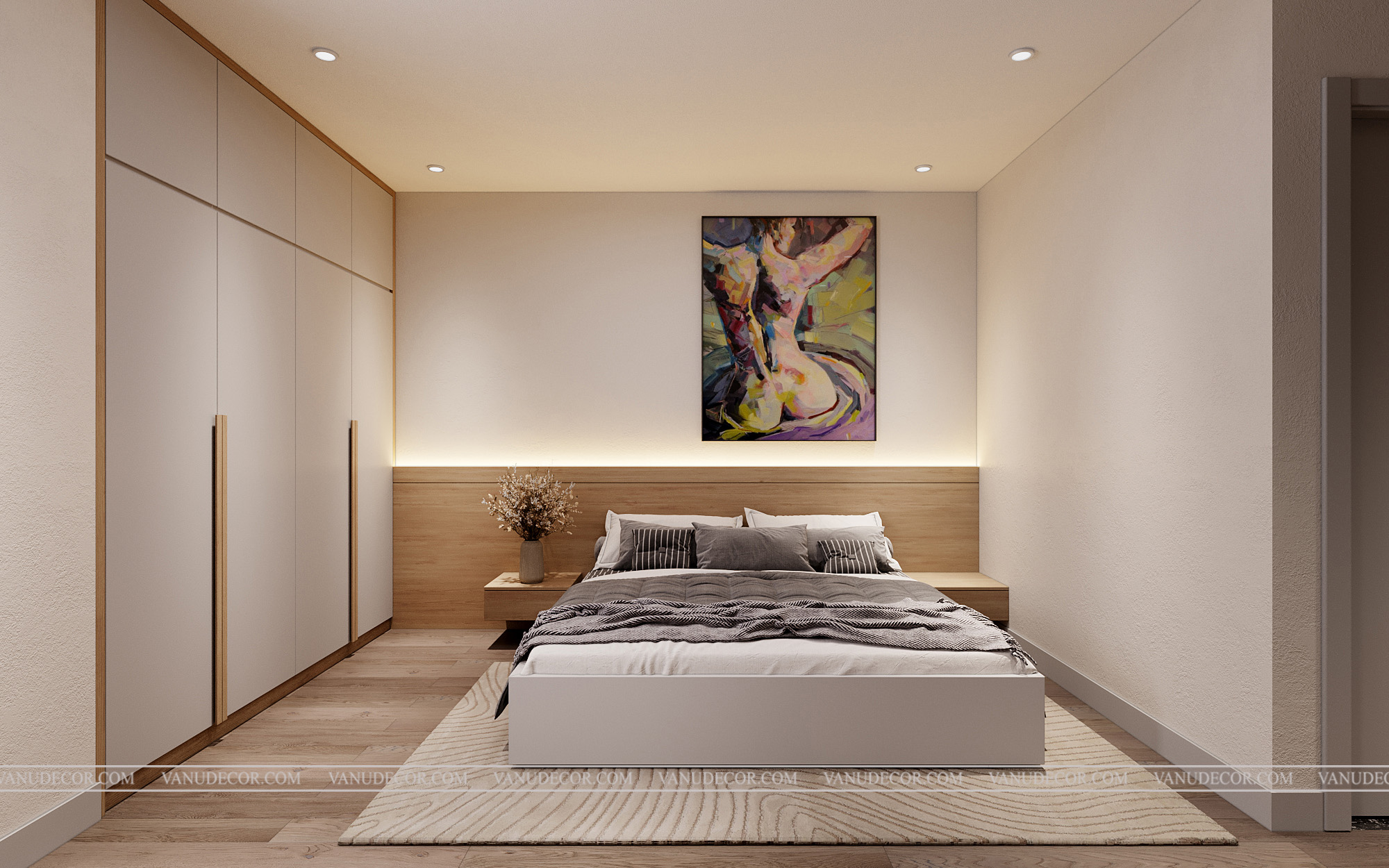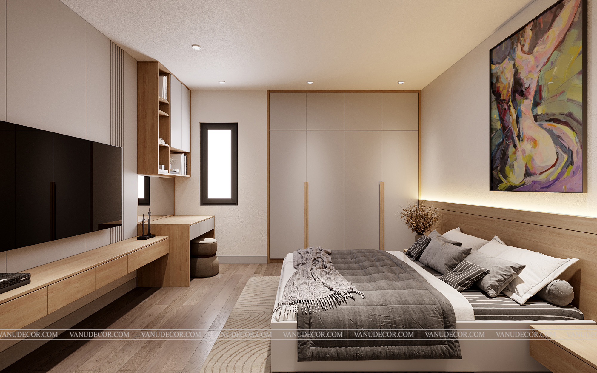 Khách hàng: Chị Huyền Địa chỉ: Khách sạn Bắc Giang Diện tích: 100m2 Hạng mục: Phòng ngủ Chất liệu chủ đạo: Gỗ MDF chống ẩm An Cường phủ melanine |