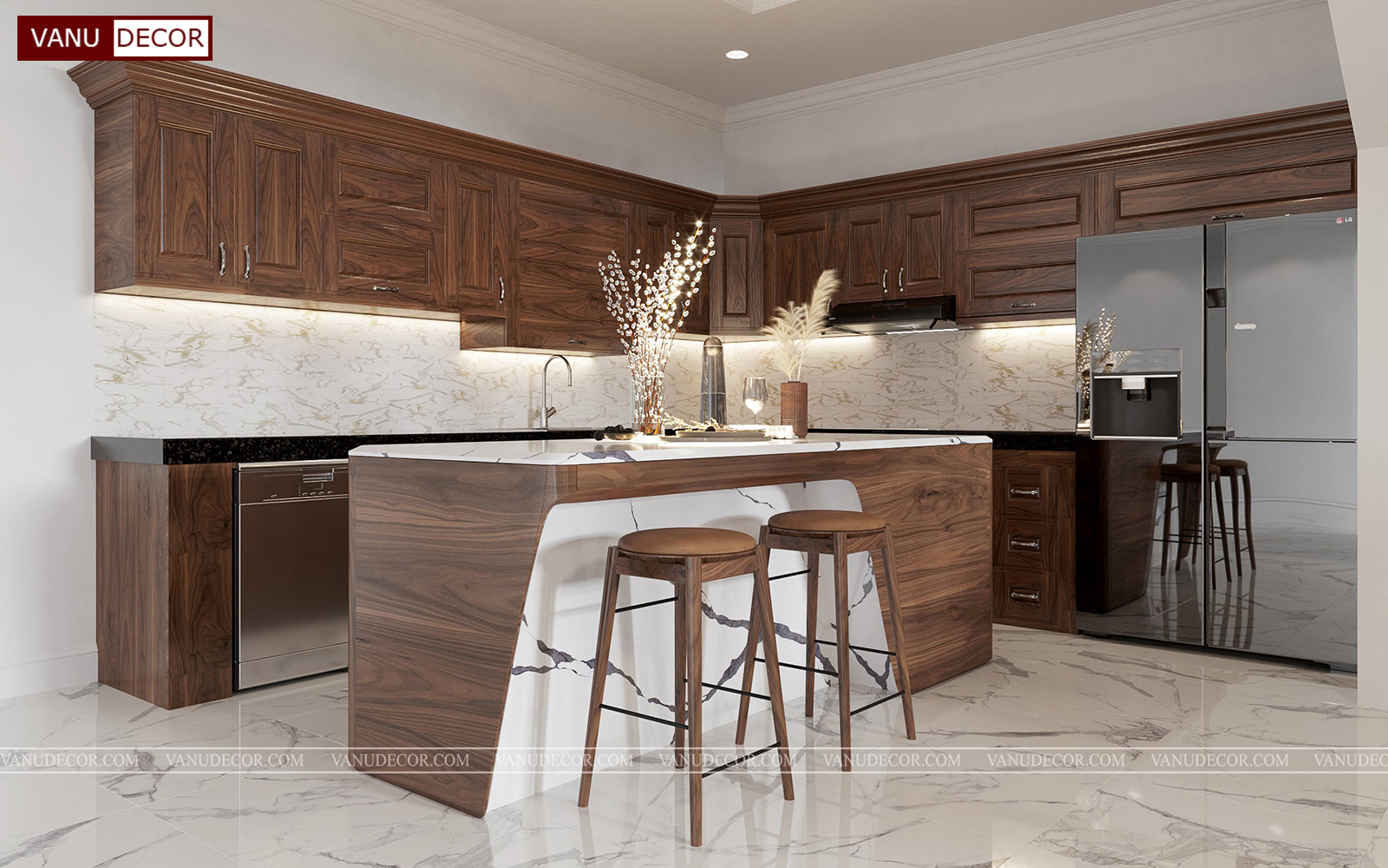 Khách hàng: Anh Việt Địa chỉ: Nhà phố - Phúc Thọ - Hà Nội Diện tích: 60m2 Hạng mục: Phòng khách, bếp Chất liệu chủ đạo: Gỗ veneer óc chó kết hợp gỗ óc chó tự nhiên |