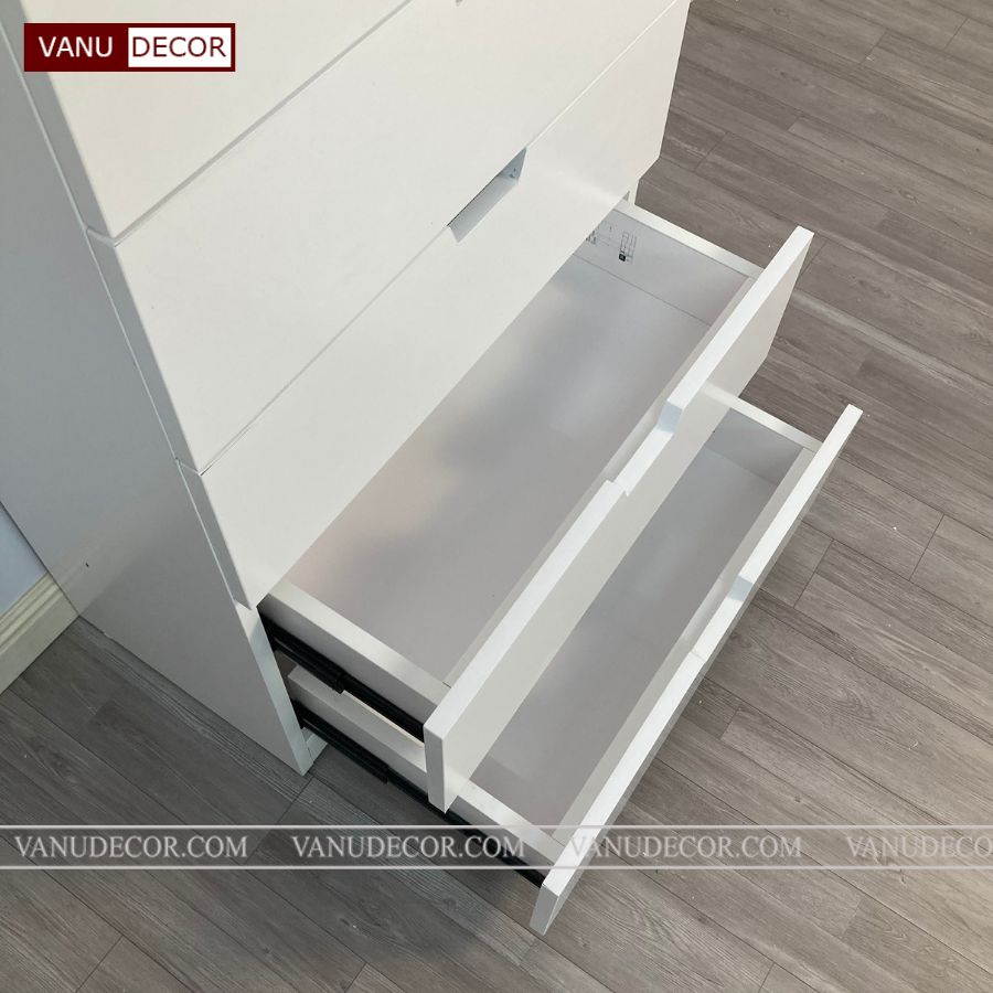 Chất liệu: Gỗ MDF cốt xanh chống ẩm phủ melanine chống trầy xước rất tốt.